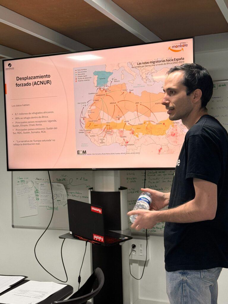 La respuesta del público fue muy positiva, con asistentes que participaron activamente en todas las dinámicas y expresaron sorpresa ante datos que desconocían. Muchos compartieron abiertamente que la sesión les había permitido “abrir la mente” y revisar ideas muy extendidas sobre la migración africana.Los días jueves 4 y viernes 5 de diciembre, la Fundación Amigos de Monkole impartió en Tenerife -en colaboración con Cooperación Internacional– la formación “Conectando Historias de África: migración, territorio y convivencia”, un espacio diseñado para comprender la migración africana a partir de datos reales, dinámicas participativas y reflexión colectiva.